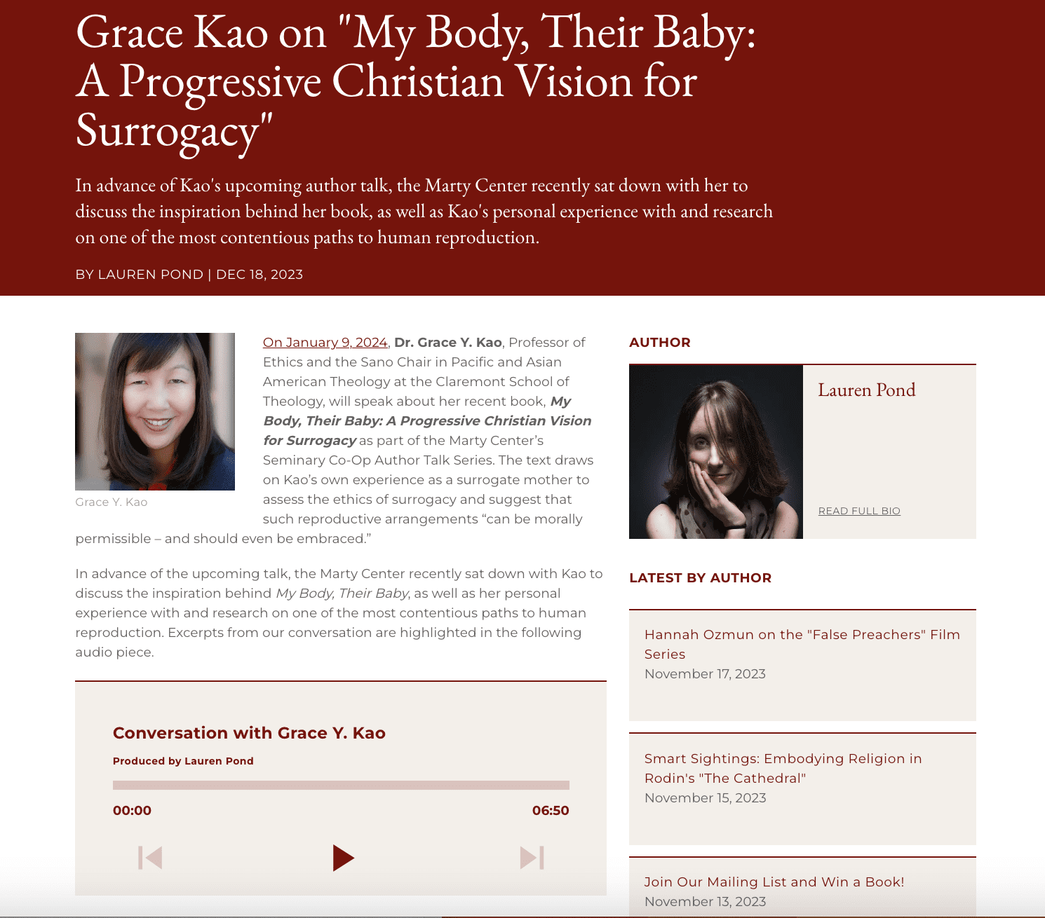 In advance of her Seminary Co-op talk at the University of Chicago, Grace Kao spoke with Lauren Pond of the Martin Marty Center about her recent book.